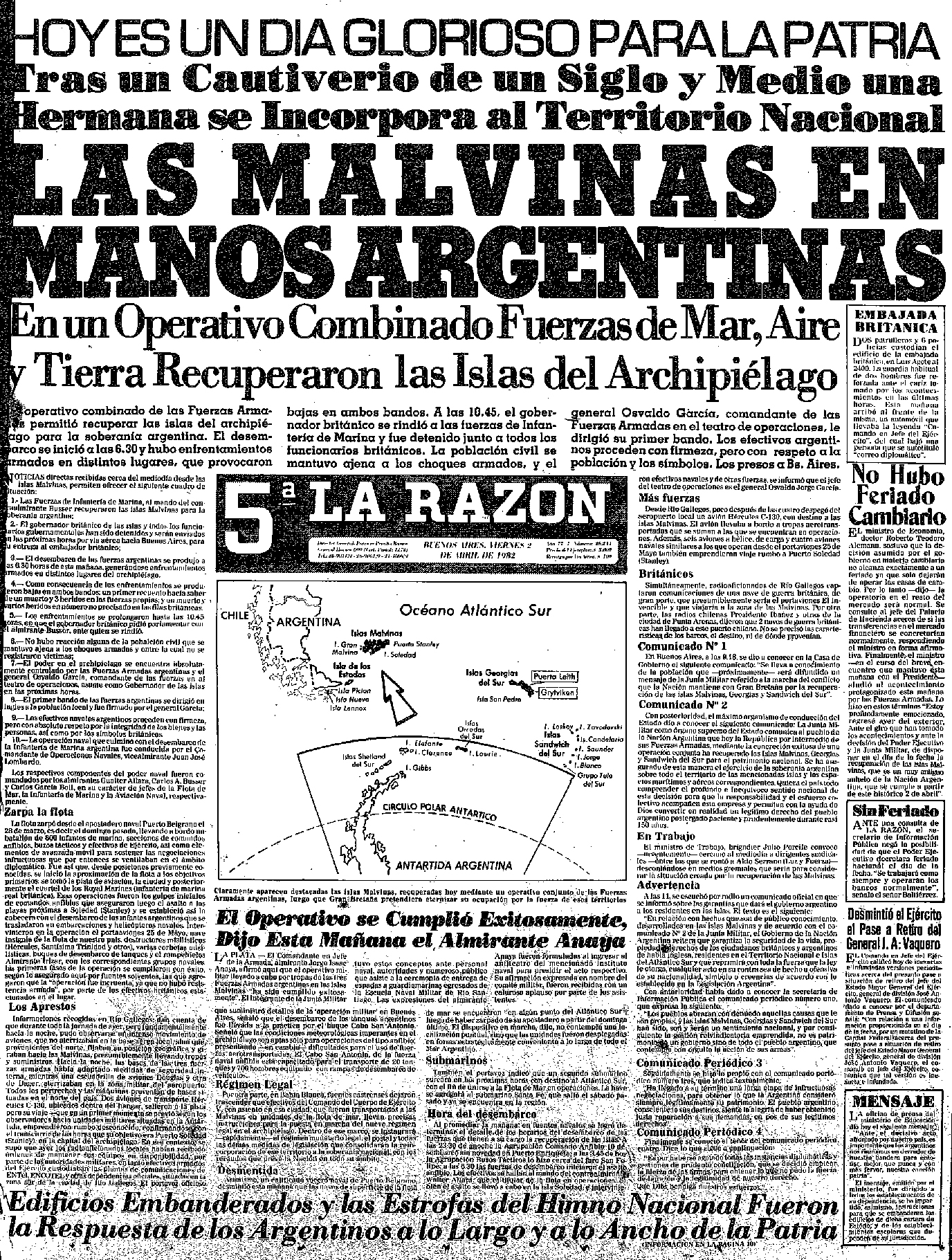 Así llamaron a una nota del diario Los Andes de Mendoza el 11 de julio de 1984. Esta nota habla acerca de la rendición de los argentinos por parte de las armas pero nunca por parte de sus conciencias ya que aquellas reposan y esperan. “El argentino de bien, lleva impresa en su vida, y para siempre, la palabra soberanía. Sabe que su patria está entera a pesar del intruso. Reza por ella noche a noche y en voz muy baja, le susurra: ¡Malvinas, volveremos”. Diario Los Andes, “Cada día un 2 de abril”, página 26. (11 de junio de 1984).